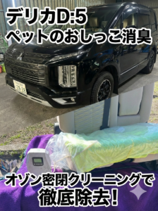 【施工事例】デリカD:5のシートにペットのおしっこ!シート取り外し&オゾン密閉で徹底消臭クリーニング新着!!