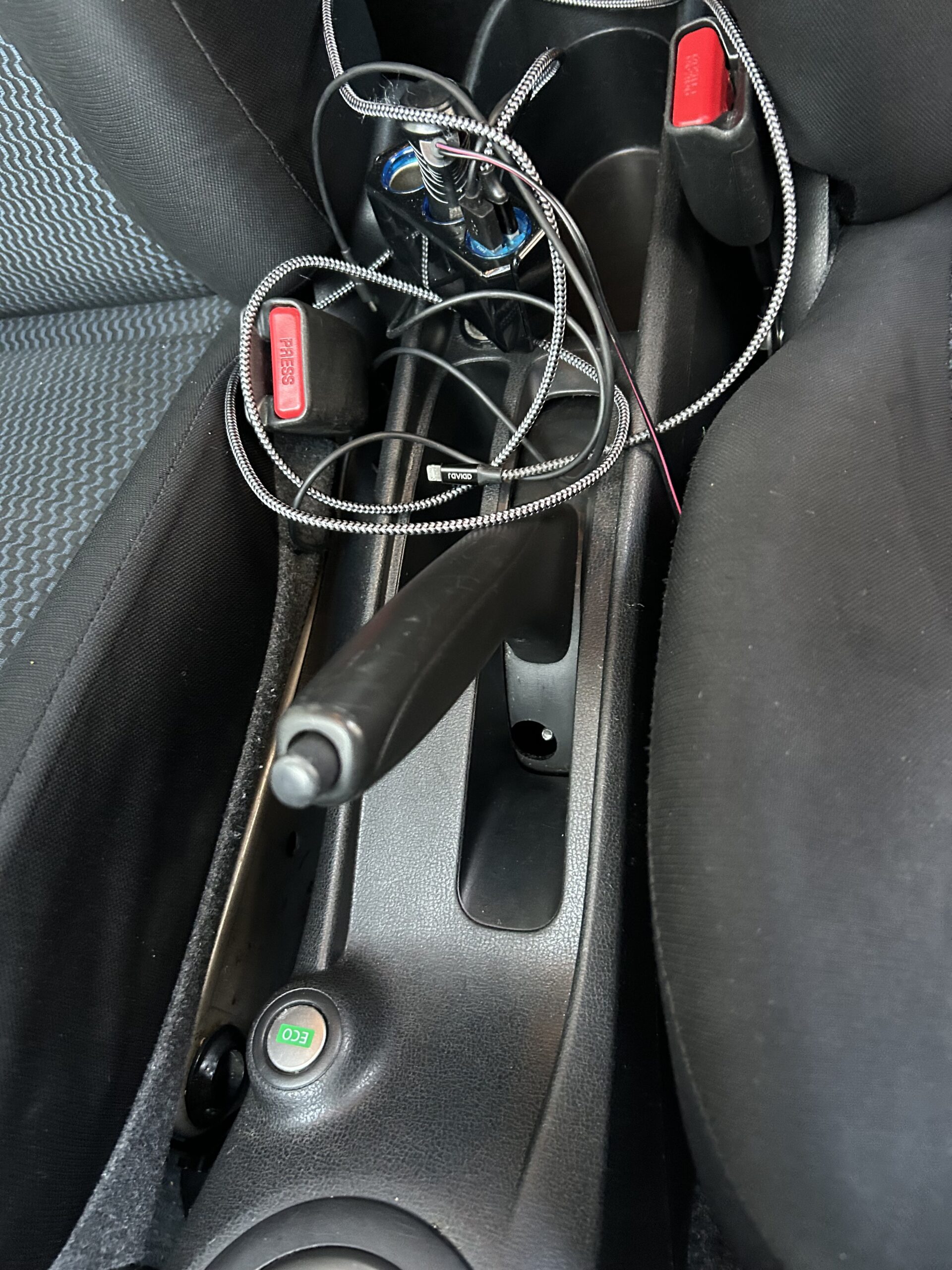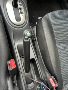 まずはこちらの写真をご覧ください。サイドブレーキとシートの間のこの「隙間」です。 ここには、長年の間に以下のようなものが蓄積しています。