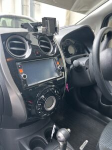 次に、運転席周りです。ナビ画面や黒いプラスチック部分は静電気を帯びやすく、このようにホコリが張り付いて白っぽくなりがちです。 水拭きをすると逆に拭き跡が残ったり、傷がついたりしてしまうデリケートな部分。ここが汚れていると、運転中に常に視界に入り、ドライバーのモチベーション低下に繋がります。
