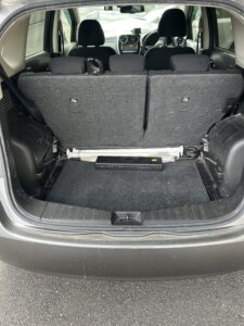 こちらはトランクの写真です。荷物の積み下ろしによる樹脂パーツの「擦れ」や、マットに入り込んだ泥汚れが目立ちます。 リース返却時や車両売却時、内装の汚れや傷は査定の減額対象になります。定期的にプロのクリーニングを入れることで、樹脂パーツの艶出しや汚れの固着を防ぎ、資産価値を維持することが可能です。