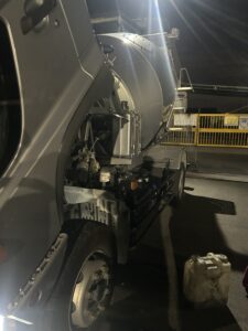 そこで当店の強みである**「出張メンテナンス」の出番です! 今回は、トラックがその日の業務を終えて車庫に戻ってきた「夜間」**のお時間に合わせてお伺いしました。