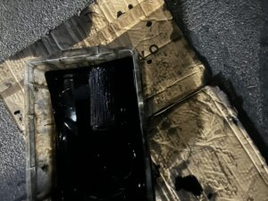 ■ 真っ黒なオイルを排出!過酷な環境で働くエンジンをケア