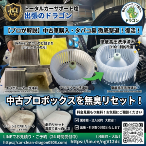 こんにちは!大阪府南河内郡を拠点に出張メンテナンスを行う「ドラゴン(トータルカーサポート煌)」です。 今回は、いつもの施工実績とは少し違う、店長ドラゴンの「日常ブログ(作業の裏側)」をお届けします!